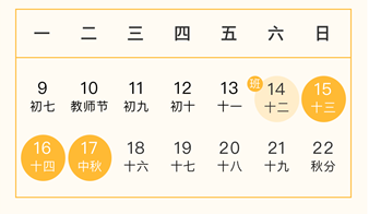 9月15日——9月17日放假,共計3天。